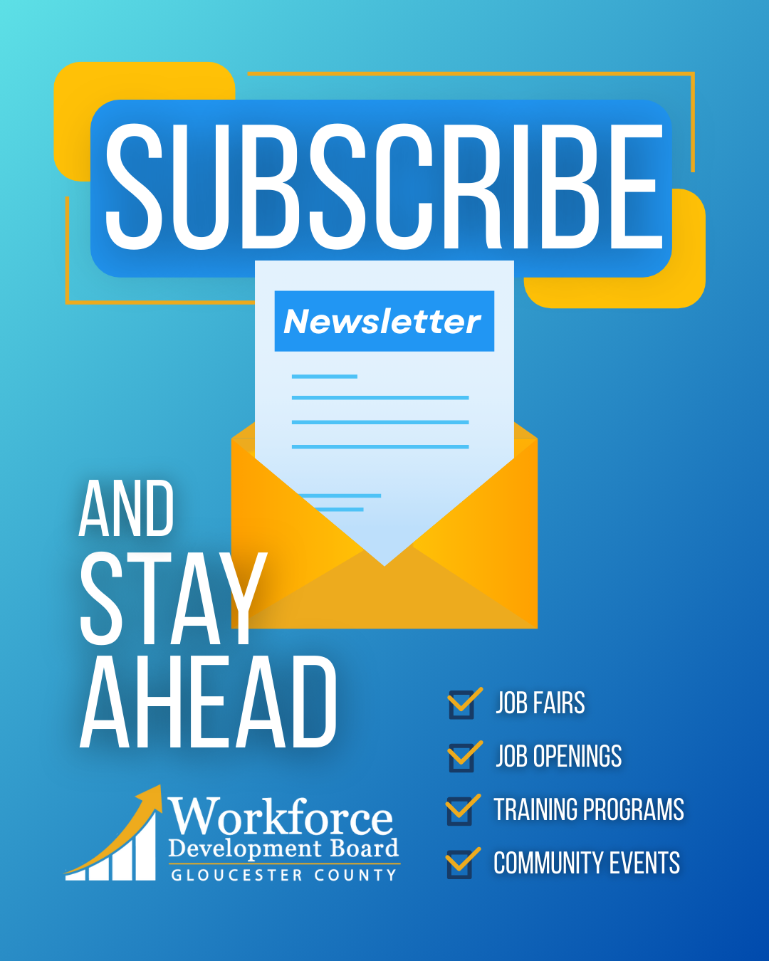 Stay informed with the latest news, programs, job opportunities, training resources, and employer updates from the Gloucester County Workforce Development Board. Explore workforce initiatives supporting job seekers, businesses, and economic growth in Gloucester County, NJ. Subscribe here!